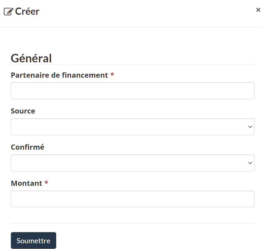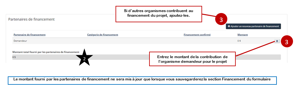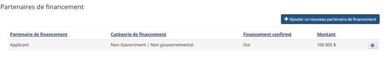 - Pour ajouter un partenaire de financement, cliquez sur le bouton
